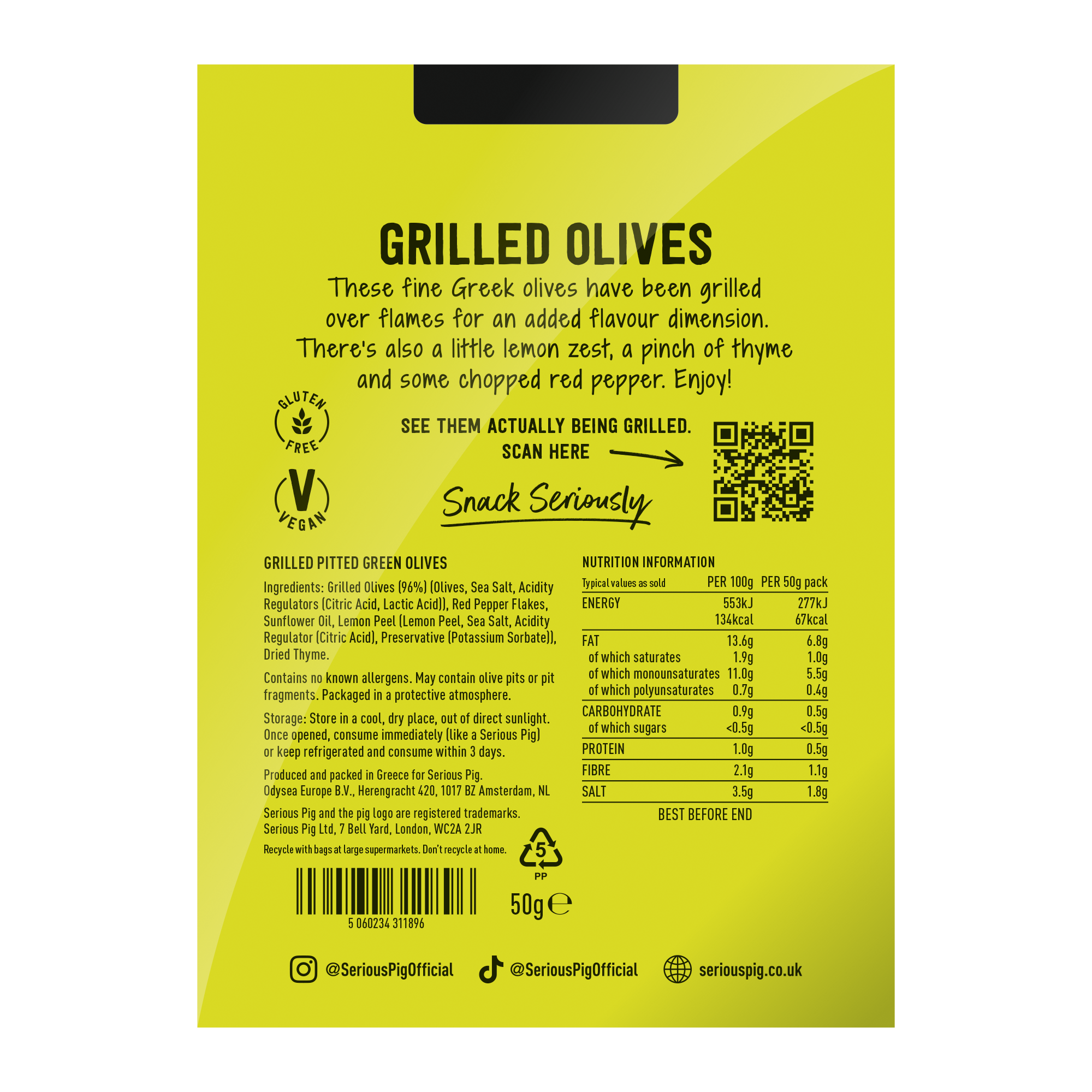 They’re the first grilled olives in a pack. A small but tasty step forward for olive fans.